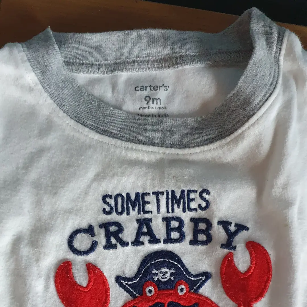 Conjunto Carter’s para bebê de 9 meses, composto por body e calça.